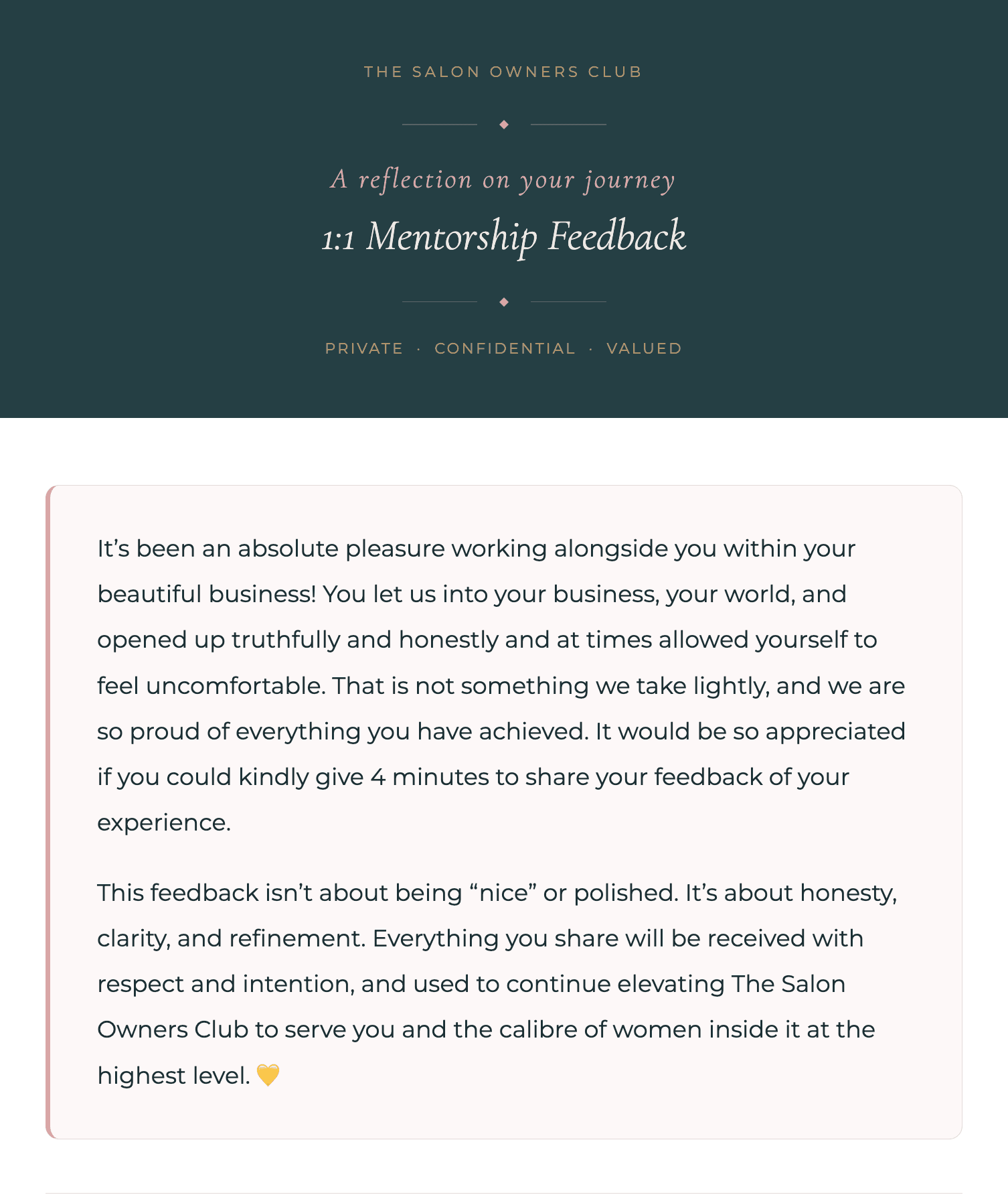 The Salon Owners Club - 1:1 Mentorship Feedback